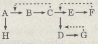 ▼ Sơ đồ dưới đây mô tả các con đường chuyển hóa giả định. Mủi tên chấm gạch chỉ sự ức chế ngược. Nếu chất G và F dư thừa trong tế bào thì nồng độ chất nào sẽ tăng một cách bất thường?