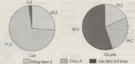 a) Tính tỉ trọng lúa và cà phê của Đông Nam Á và Châu Á so với thế giới năm 2000.