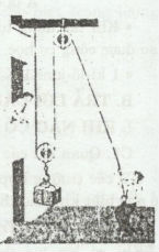 c) Người công nhân dùng ròng rọc cố định kéo vật nặng lên cao (hình vẽ bên).