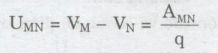 Hiệu điện thế giữa điểm M, N trong điện trường đặc trưng cho khả năng sinh công của lực điện trong sự di chuyến của một điện tích từ M đến N. Nó được xác định bằng thương số của công của lực điện tác dụng lên