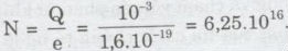 Điện lượng chạy qua mặt ngoài của catốt trong 1s là Q = It = 10-2C.