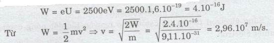 11. Hiệu điện thế giữa anốt và catốt của một súng electron là 2500V. tính tốc độ của electron mà súng phát ra. Cho biết khối lượng của electron là 9,11.10-31kg.