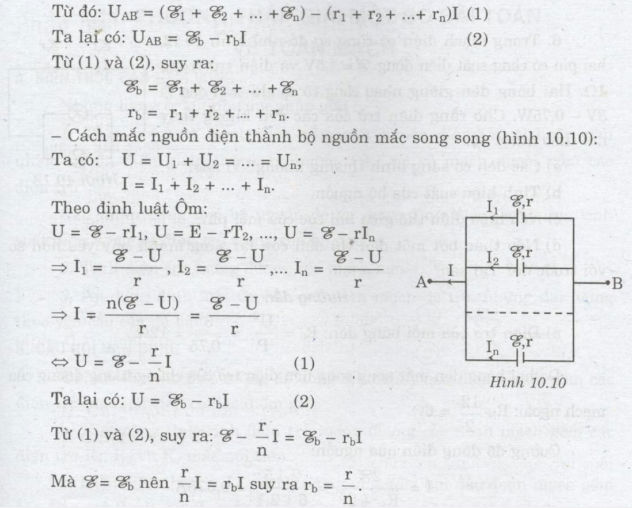 Xét bộ nguồn gồm n nguồn điện giống nhau ghép song song như hình vẽ 10.3