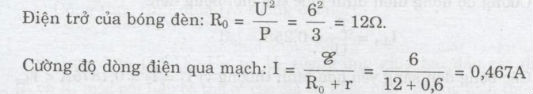 4. Một acquy có suất điện động và điện trở trong là E = 6V, r = 0,6(ôm). Sử dụng acquy này để thắp sáng bóng đèn có ghi 6V – 3W. Tính cường độ dòng điện chạy trong mạch và hiệu điện thế giữa hai cực của acquy khi đó.
