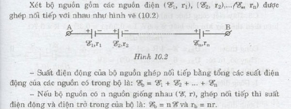 3. Trình bày các cách mắc nguồn điện thành bộ nguồn nối tiếp, và thành bộ nguồn song song. Trong từng trường hợp hãy viết công thức tính suất điện động của bộ nguồn và điện trở trong của nó.