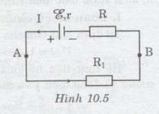 C1. Hãy viết công thức liên hệ giữa suất điện động E với cường độ dòng điện I và các điện trở r, R, R1 của mạch điện kín cho trên hình 10.5
