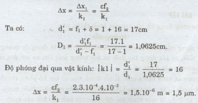 9. Một kính hiển vi có các tiêu cự vật kính và thị kính là f1 = 1cm, f2 = 4cm. Độ dài quang học của kính ð = 16em. Người quan sát có mắt không bị tật và có khoảng cực cận OCc = 20cm Người này ngắm chừng ở vô cực.