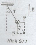 C1. Treo một đoạn dây dẫn MN trong một từ trường đều có vectơ cảm ứng từ B hướng thẳng đứng lên trên bằng hai sợi dây mảnh ở hai đầu. Cho dòng điện chạy qua dây dẫn thì góc lệch của dây treo so với phương thẳng đứng là