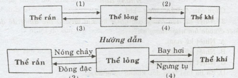 5. Điền vào đường chấm chấm trong sơ đồ tên gọi của sự chuyển thể ứng với các chiều mũi tên.