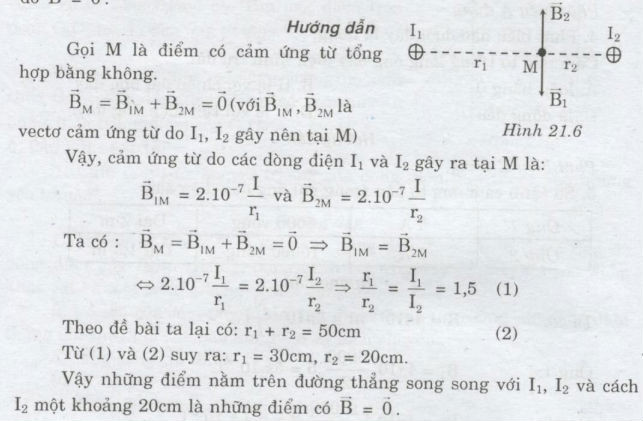 Vậy những điểm nằm trên đường thẳng song song với I1, I2 và cách I2 một khoảng 20cm là những điểm có