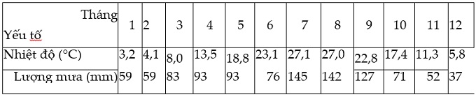 Câu 3. Cho bảng số liệu sau: