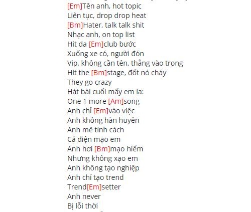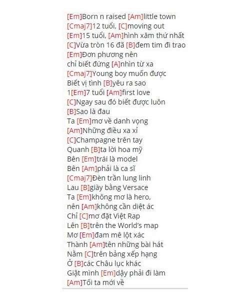Hợp âm bài hát 021 Binz – Touliver