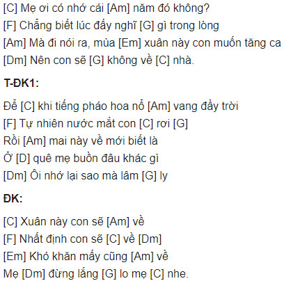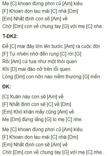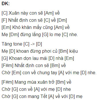 Hợp âm bài hát Xuân Này Con Sẽ Về