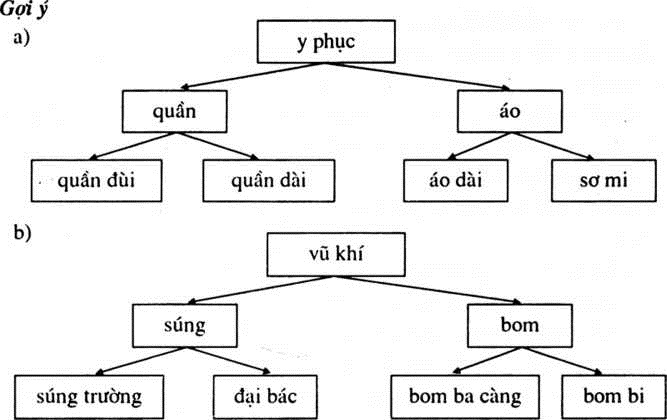 Bùi tập 1. Lập sơ đồ thể hiện cấp độ khái quát của nghĩa từ ngữ trong mỗi nhóm từ ngữ sau đây (theo mẩu sơ đồ trong bài học):