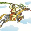 – Một mình một ngựa, tráng sĩ lên đỉnh núi, cởi giáp sắt bỏ lại, rồi cả người lẫn ngựa từ từ bay lên trời.