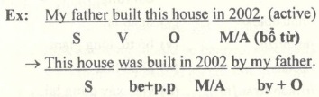 e. Lấy chủ từ câu chủ động làm túc từ sau chừ By. (túc từ này gọi là túc từ tác nhân – agent object)