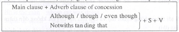 B. Adverb clauses of concession (Mệnh đề phó từ chỉ sự nhượng bộ) Mệnh đề phó từ chỉ sự nhượng bộ bắt đầu bằng một liên từ chỉ sự nhượng bộ (conjunctions of concession)