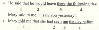 3) Thay đổi thì của động từ của câu trực tiếp theo bảng sau: